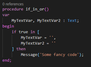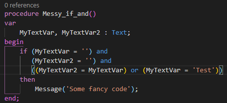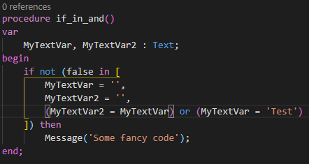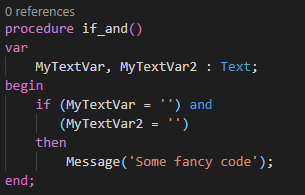 In this example parentheses are mandatory because in AL the “and” would try to evaluate this: