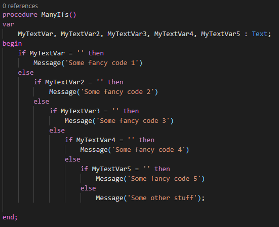 Okay so far so simple. If you need to evaluate more than two conditions and maybe even nest conditions this can get messy.