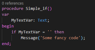 It just checks if the text variable is empty and if this is the case, some code is executed. Note that in AL the parentheses are not needed if you have only one condition or if you compare booleans.